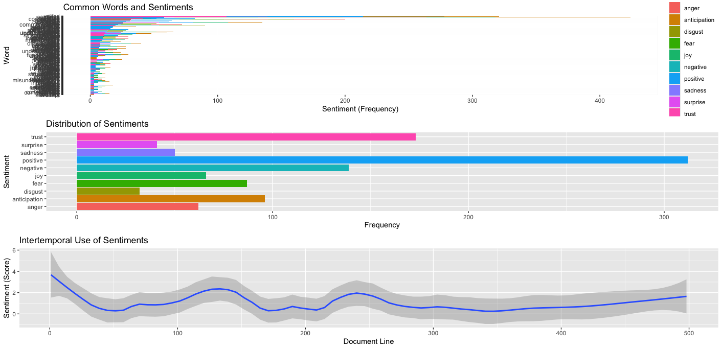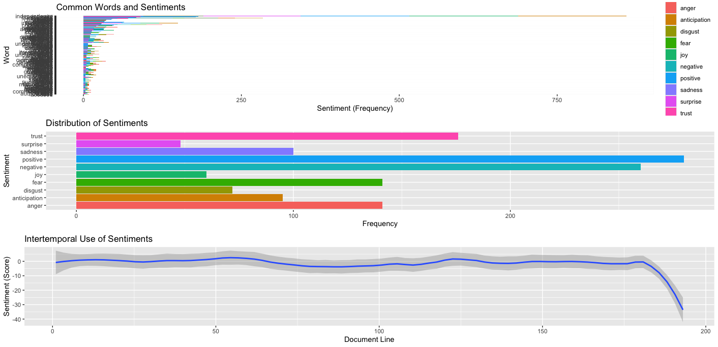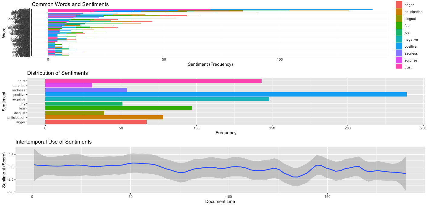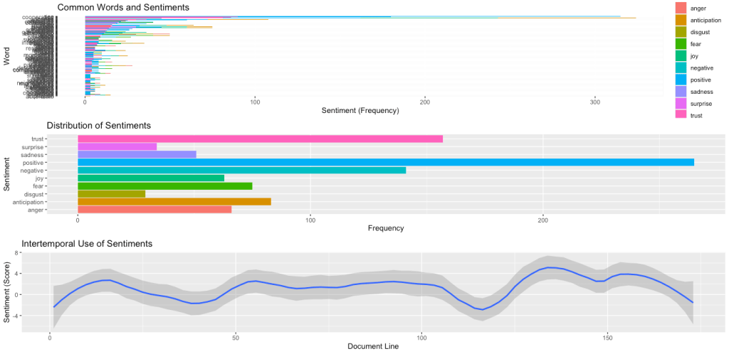 We designed a program in R for sentiment analysis of official government documents and press releases from the US Department of State (DOS) and from China’s Ministry of Foreign Affairs (MFA). Briefly, the R program matches the most frequently invoked words on either side toward each flashpoint to the sentiments with which they were invoked. We employed the NRC Word-Emotion Association Lexicon as a metric, and relevant R packages, to design our program. What is expressed by a country only tells us one side; for a comprehensive analysis, we also actively consider the actions of said country to examine matches or mismatches between rhetoric and behavior. Due to considerations of feasibility, we situate our analysis between 2020 and the present since the pandemic marked a disjunctive event that contributed to the ostensible hardening of stances toward the respective flashpoints, as well as for contemporary relevance. We analyzed a total of 200 documents containing 96,364 words, and the graphical results of our study can be found on the Hemispheres website.