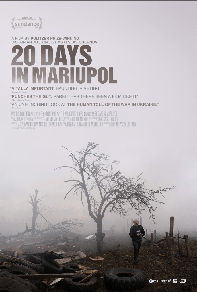 20 Days in Mariupol is an Oscar award-winning documentary that follows Associated Press reporter Mstyslav Chernov during the first 20 days of the Russia-Ukraine war in the Ukrainian city of Mariupol. As a journalist, Chernov records the series of events as Russian forces attacked civilians and blocked humanitarian aid from entering the city. His captured footage is almost exclusively the only footage released from Mariupol, as the Russians cut off all radio and internet access. The publication of the footage released in 20 Days in Mariupol is crucial in documenting the potential war crimes committed by the Russian army — footage that has continually been defamed as fake by Russian authorities.