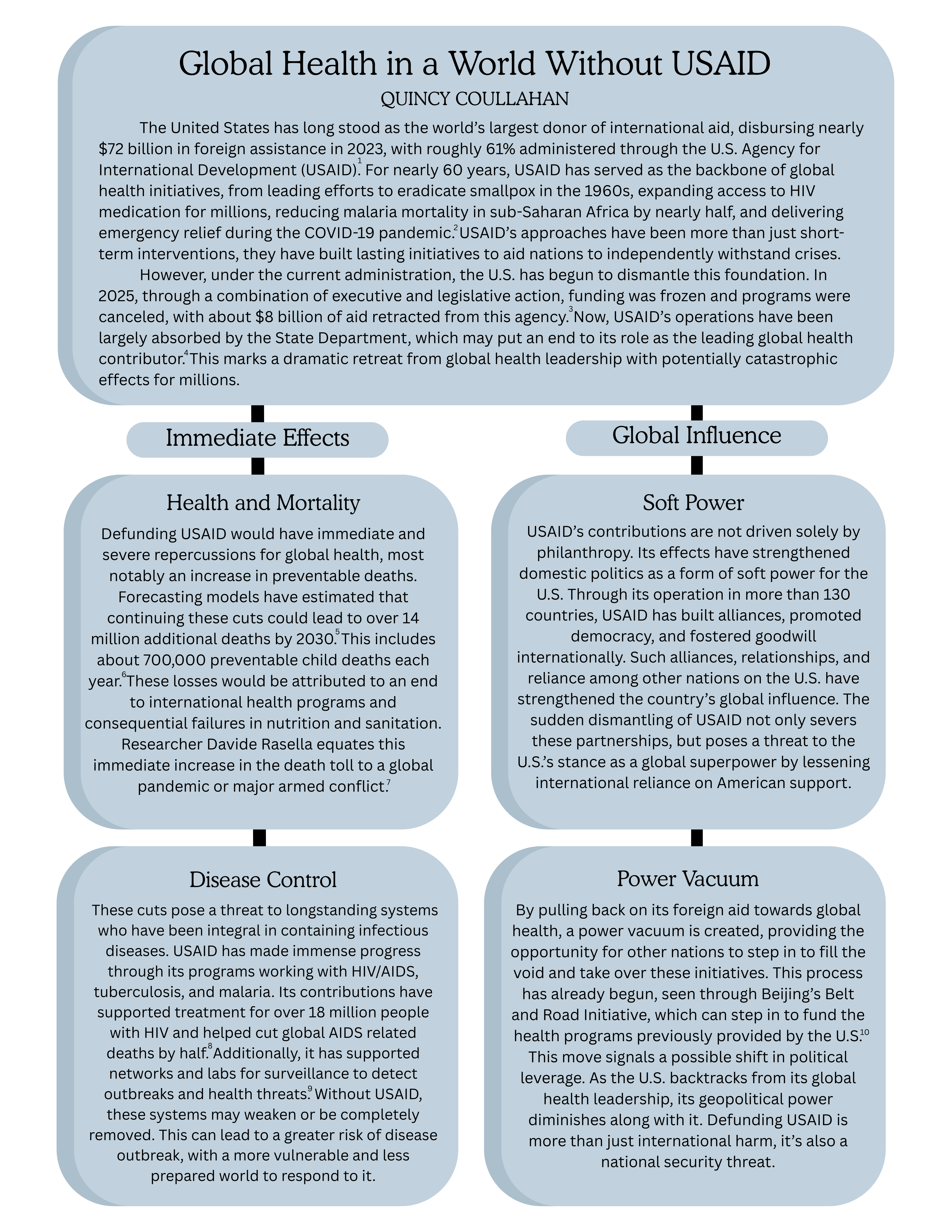 Climate & Health, MagazineGlobal Health in a World Without USAID By Quincy Coullahan Share on Facebook (Opens in new window) Facebook Share on LinkedIn (Opens in new window) LinkedIn Email a link to a friend (Opens in new window) Email Print (Opens in new window) Print Related